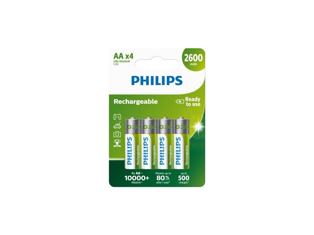 Alkalické baterie Philips AA Power Alkaline Alkalické AA baterie Philips LR6 jsou 6× lepší než průměrné zinkou hlíkové baterie a jsou vhodné do zařízení s vysokou spotřebou energie. Baterie zůstává použitelná až 5 let. Parametry: alkalické jádro s napětím 1,5Vbez kadmia, bez rtuti, bez olova4 ks v balení.