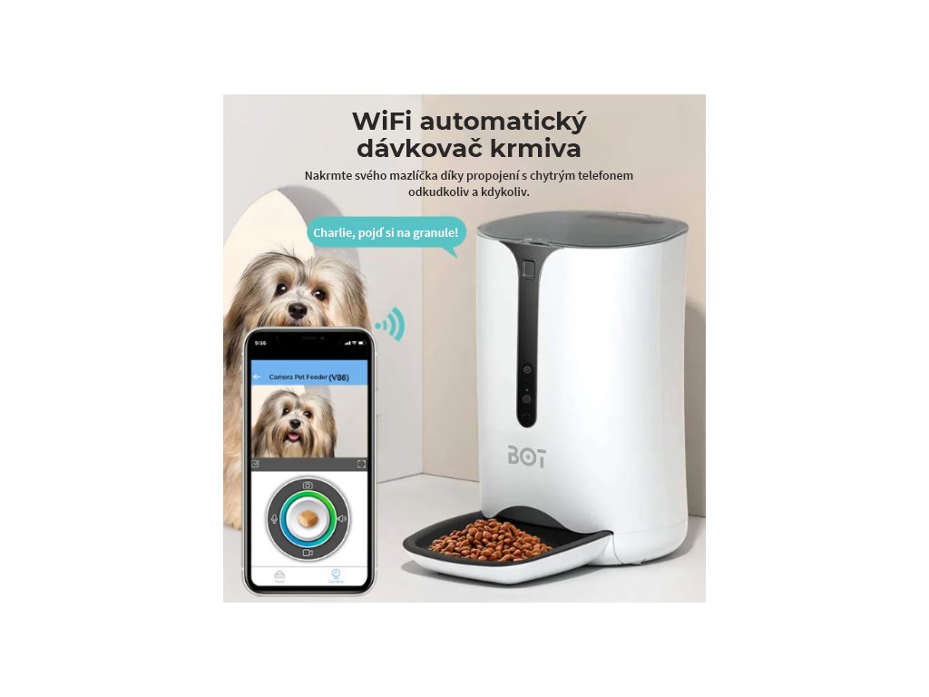 Zdrželi jste se v práci a nestíháte se domů vrátit a nakrmit Vašeho mazlíčka? Zapomněli jste připravit krmení, zatímco jste na služební cestě? Všechny tyto situace můžete předcházet pořízením si inteligentního dávkovače krmiva pro psy i kočky. Pomocí aplikace (iOS i Android) nastavíte jednoduše plánované krmení, tj. objem, čas i datum, včetně opakování. Nastavte si libovolné intervaly i množství krmiva ideálně tak, aby se váš pejsek nebo kočička nepřejídali: dlouhodobě tím prospějete jejich kondici. V době svojí nepřítomnosti můžete také nahrát krátkou 10 vteřinovou zprávu, kterou upozorníte mazlíčka na čas krmení vzdáleně. Díky chytré detekci krmiva zabráníte přeplnění misky, pokud by nebyla dojezena z předchozí dávky. Dávkovač disponuje dvěma druhy rotorů pro menší a větší mazlíčky pro optimální porci jídla, pro malá zvířátka 5-135 g, pro větší 10-390 g.