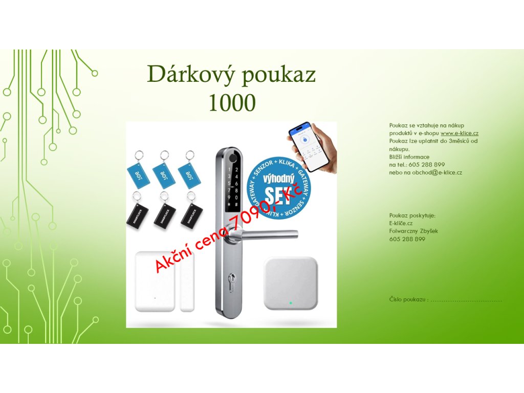 Dárkový poukaz v hodnotě 1000 Kč udělá pod stromečkem radost každému a Vy eliminujete riziko, že koupíte nevhodný dárek. Poukaz zasíláme po zaplacení obratem v elektronické podobě. Můžete tak doma jednoduše vytisknout nebo originálně a v pravou chvíli zaslat jako překvapení obdarovanému na jeho e-mail. Při nákupu pak v košíku zadáte jednoduše kód z voucheru do pole "Mám slevový kupón" a hodnota poukazu 1000 Kč se Vám odečte z hodnoty nákupu.