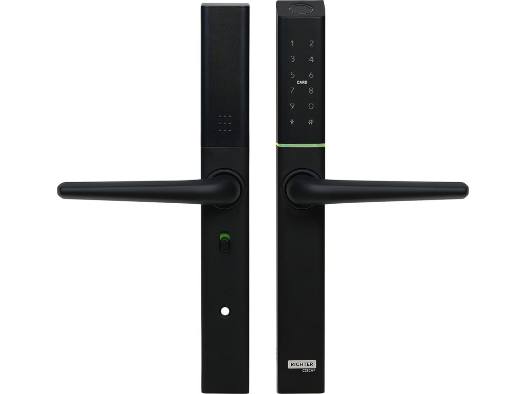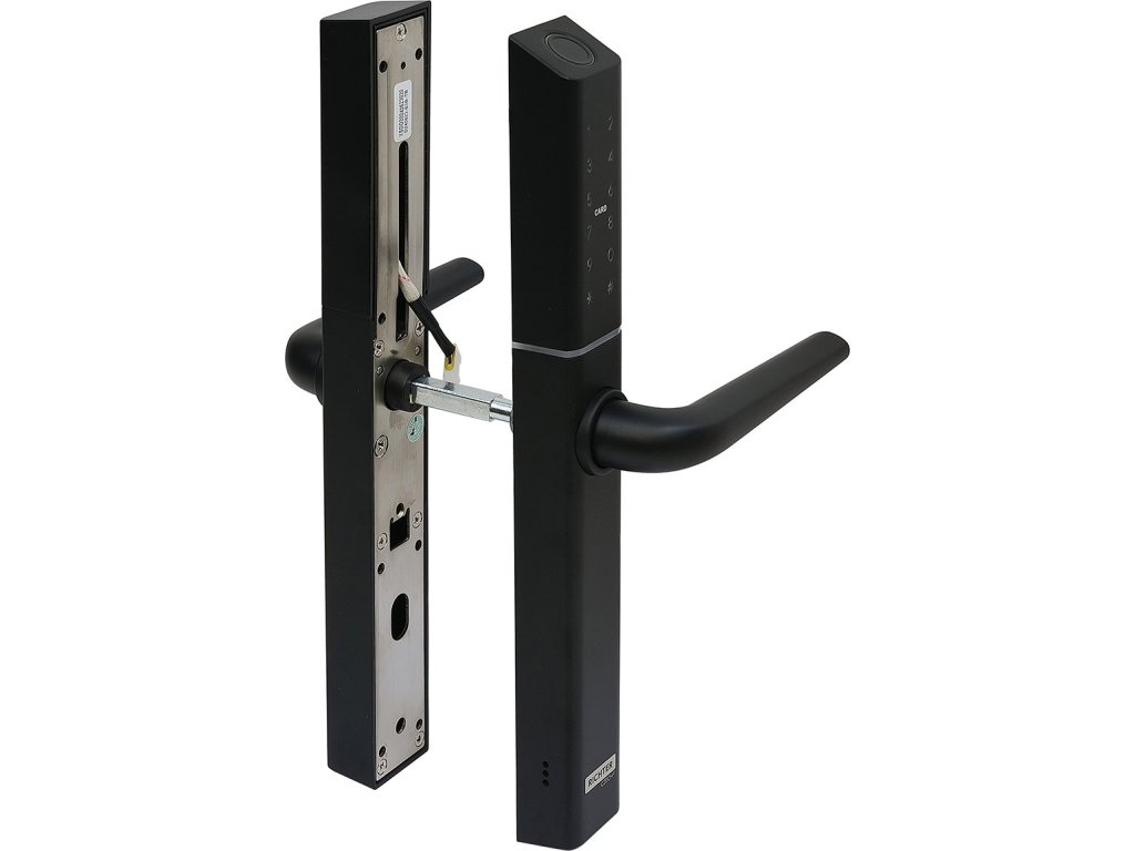 - Možnost autentizace pomocí otisku prstu, IC karty, číselného kódu nebo mobilní aplikace TTLock bez nutnosti použití klasického klíče.